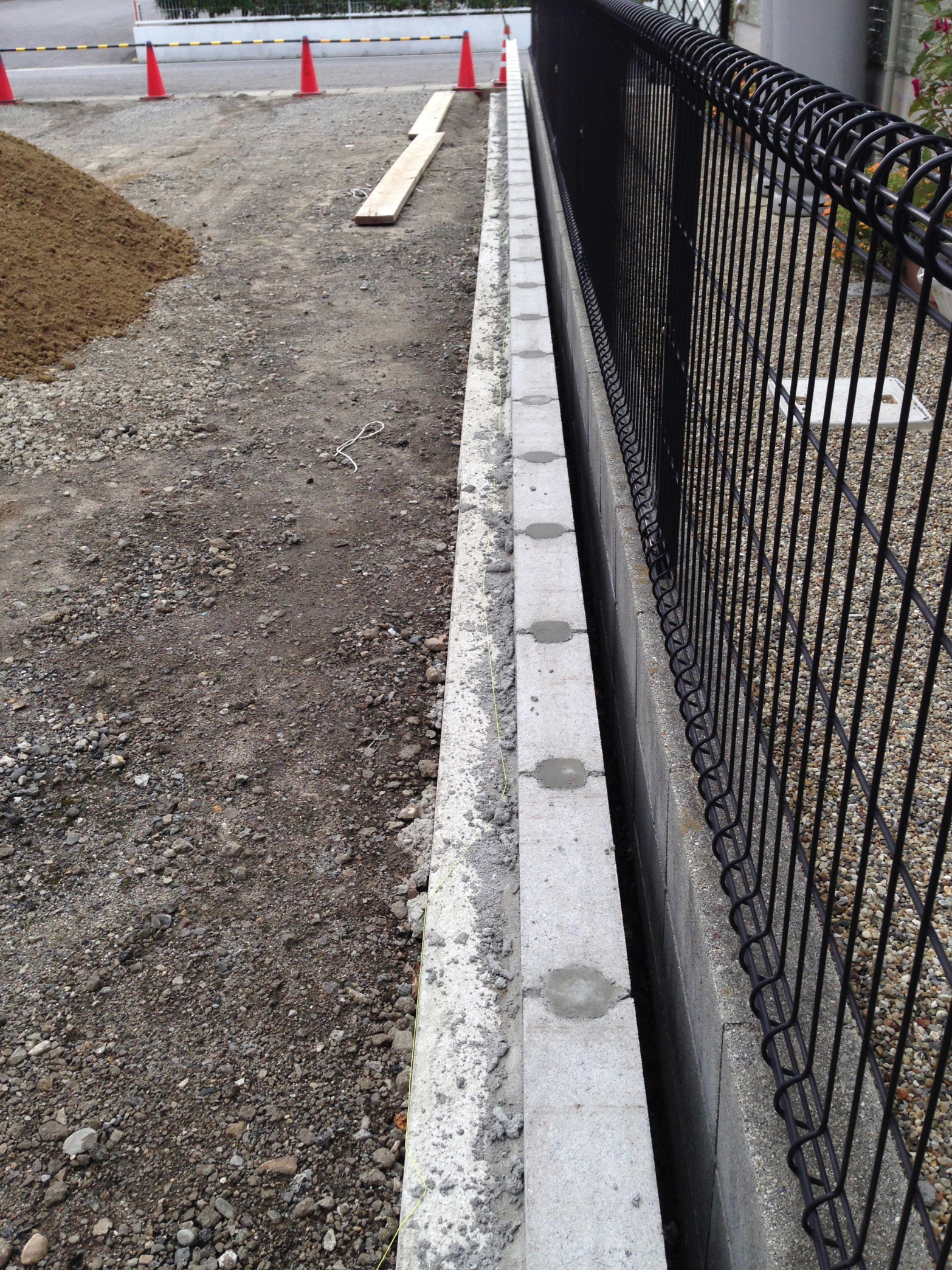 最近はお隣さんとお互いに少しずつ境界から控えてブロックを積むケースが多く