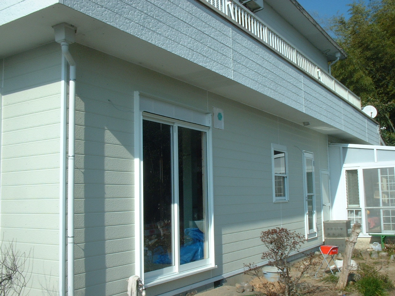 すっかり、外壁も新しく張り替えました。現在、何色に塗装するかサンプルを作成中です。