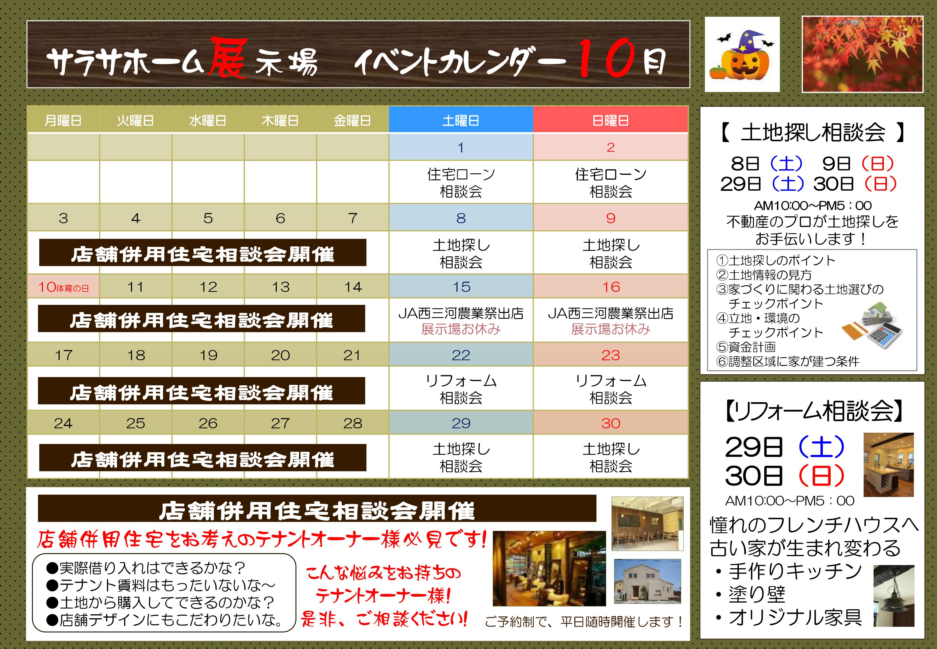 展示場の10月イベントカレンダー更新しました!